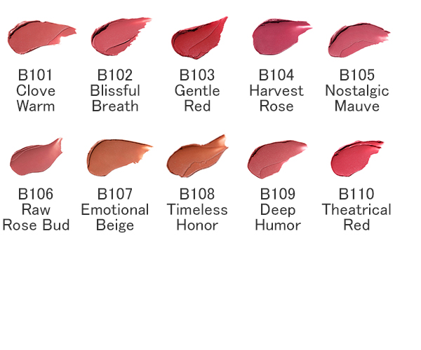 息吹を感じるようなやわらかな仕上がりが長時間続く、生命感ラスティングルージュ。滲み出るような「湿度感」と「微熱の赤」、唇そのものが息づくような心地よい「やわらかさ」を感じるブリージングマット質感で、豊かな生命力が表情に宿る。よれ・こすれに強く、唇に寄り添うように密着。うるおいを閉じ込めるラッピング効果で、唇を乾燥やあれから守り、オフした後の唇まで美しくみせる美容液ルージュ。
