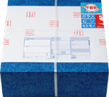 商品の外箱に掛け紙を巻いて、配送伝票を貼り付けます。