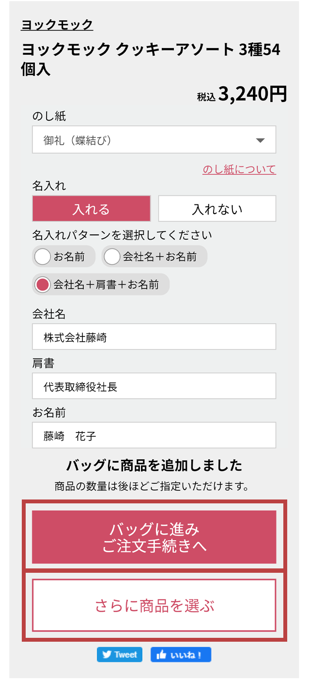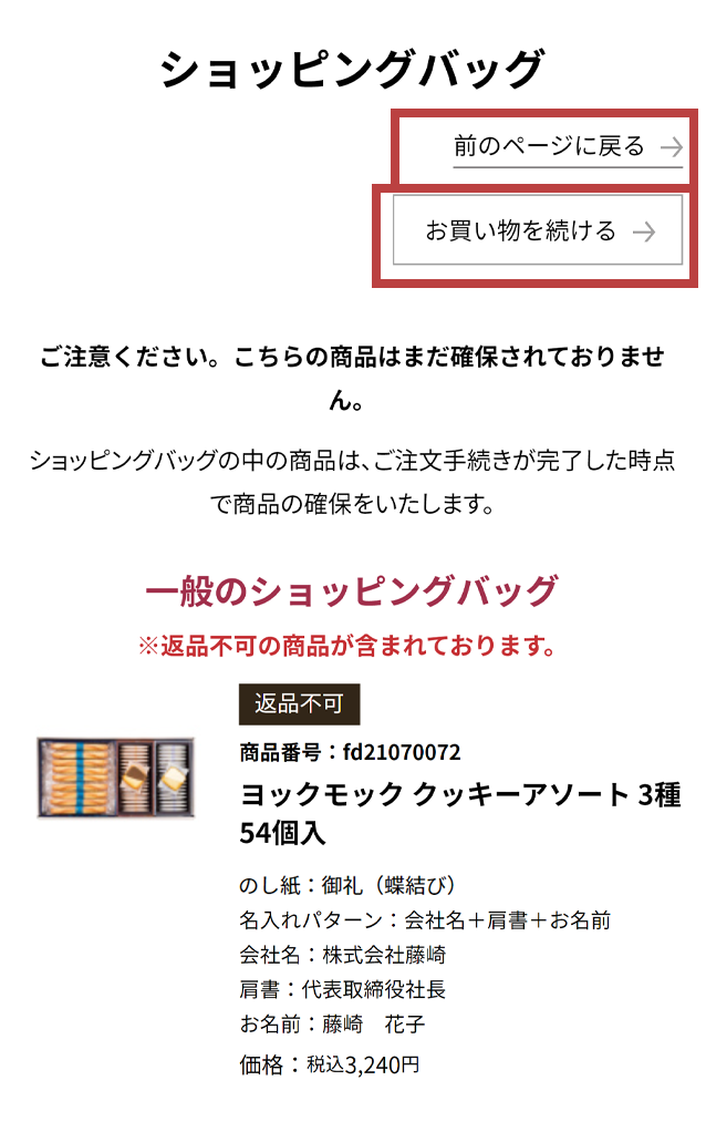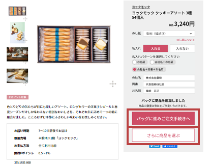 - 商品により、ボタン名が変わる場合がございます。(例:おせちサイトから続けて商品を選ぶなど)