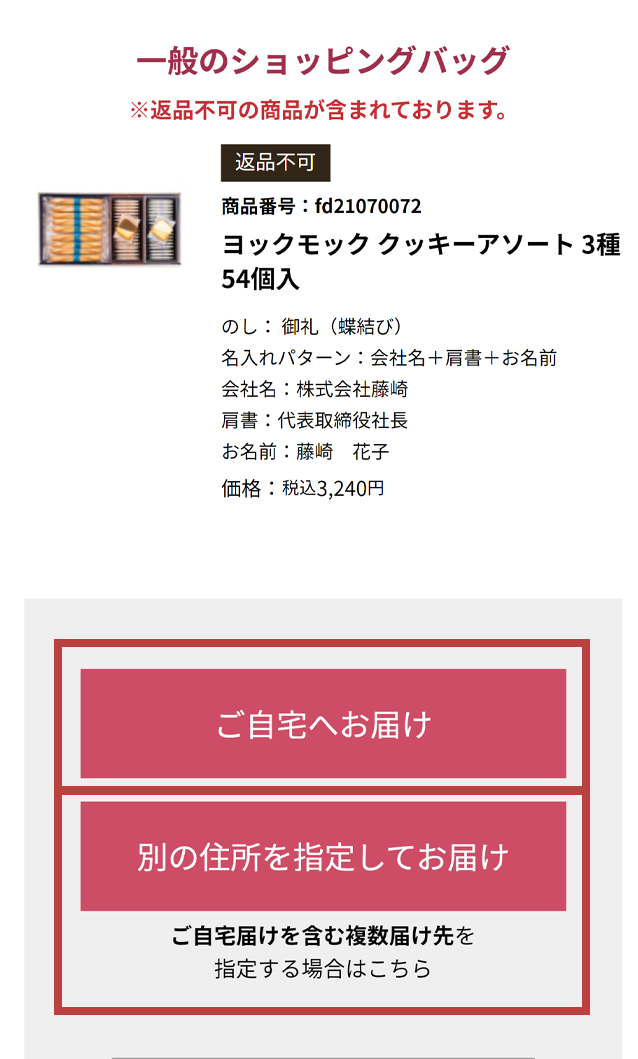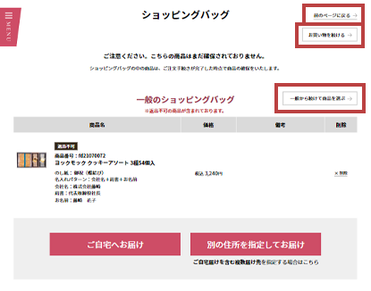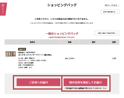 - お届け先の選択途中で商品の追加や変更をすることはできません。商品の数量は変更ができます。