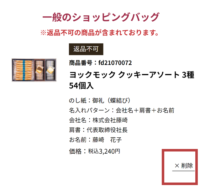 - 同一商品を異なる種類ののし紙でご注文いただく場合は、のし紙ごと別々にショッピングバッグに入れてください。