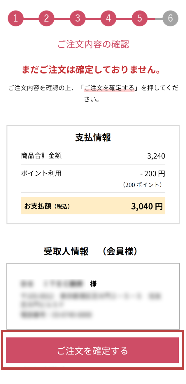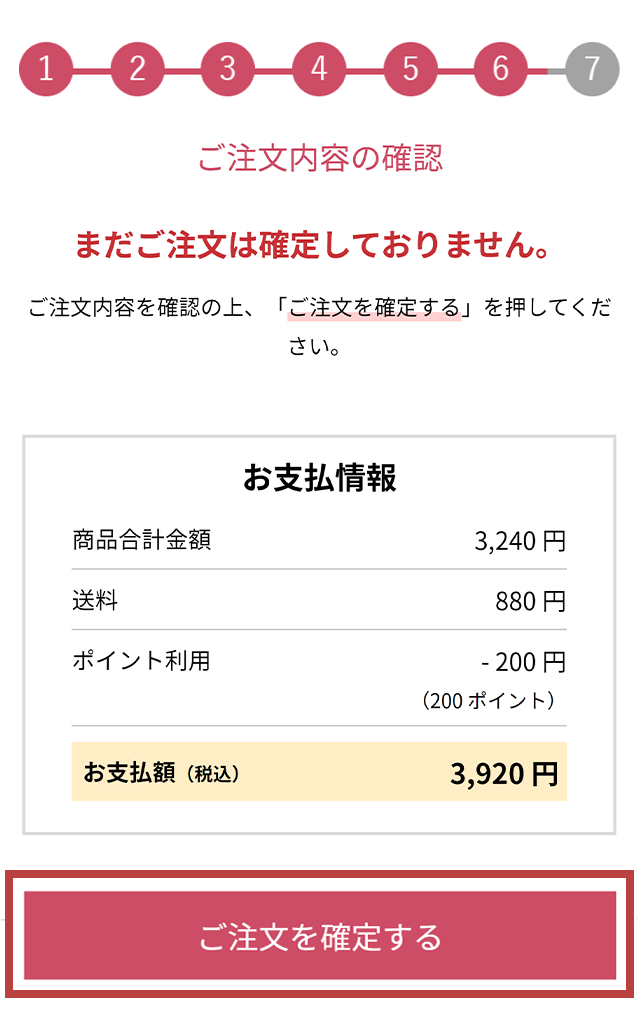 内容をすべてご確認後、「ご注文を確定する」を押してください。