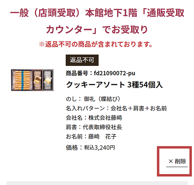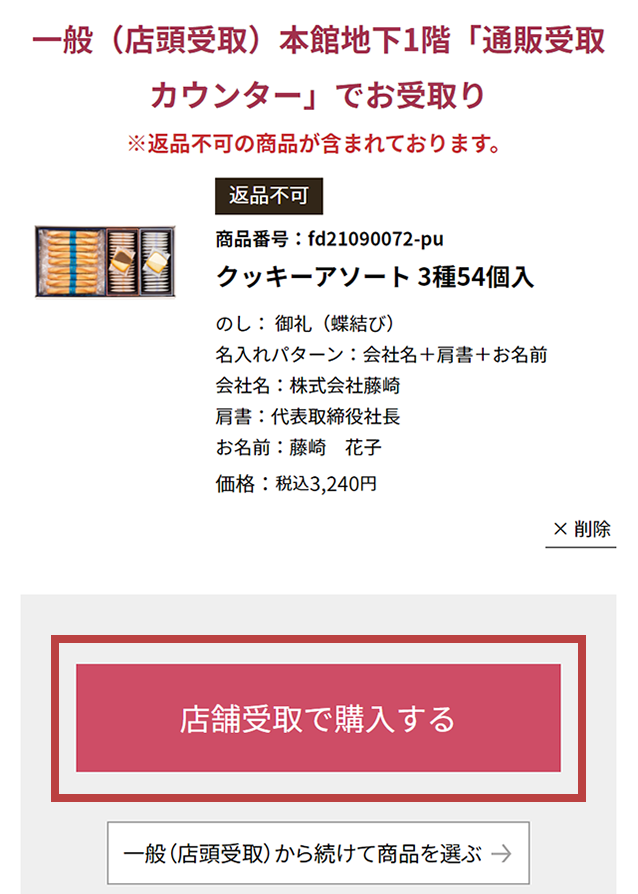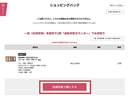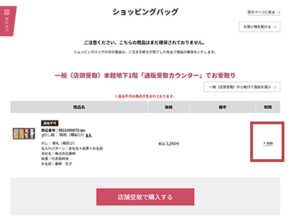 - 商品により、お受取店舗やのし紙がお選びいただけない場合や、お選びいただけるのし紙に限りがございます。