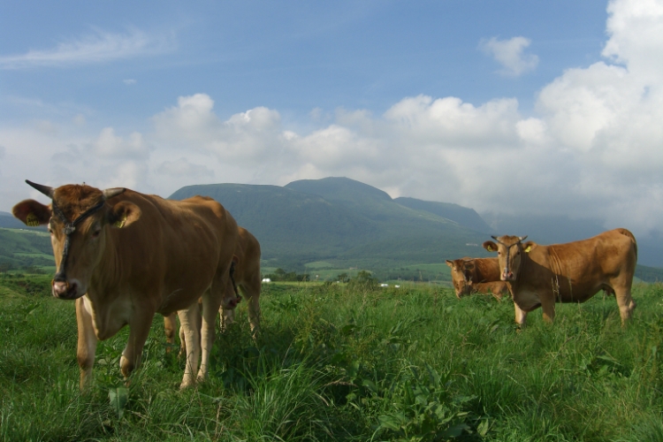 第1回目として皆様にご紹介する産品は「くまもとあか牛」です。熊本県の阿蘇地域で飼われていた在来種をもとに、昭和19年に日本固有の和牛「あかげわしゅ(褐毛和種)」として登録されました。