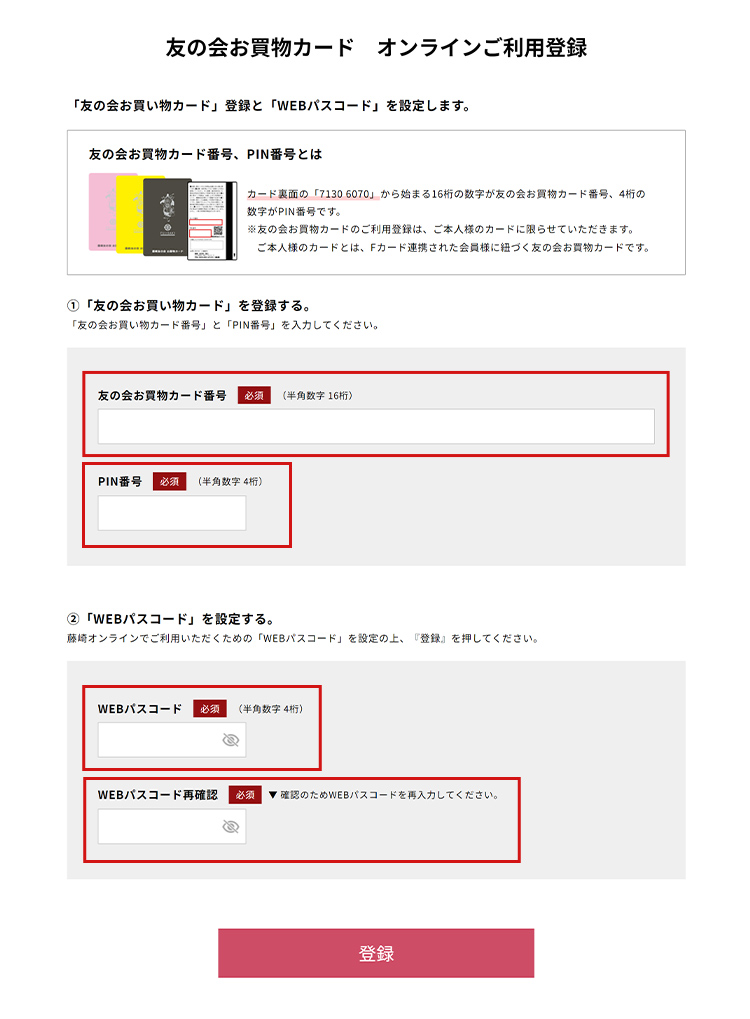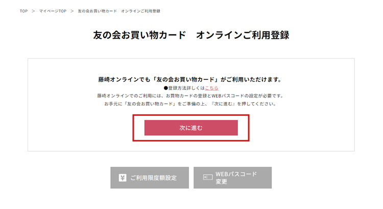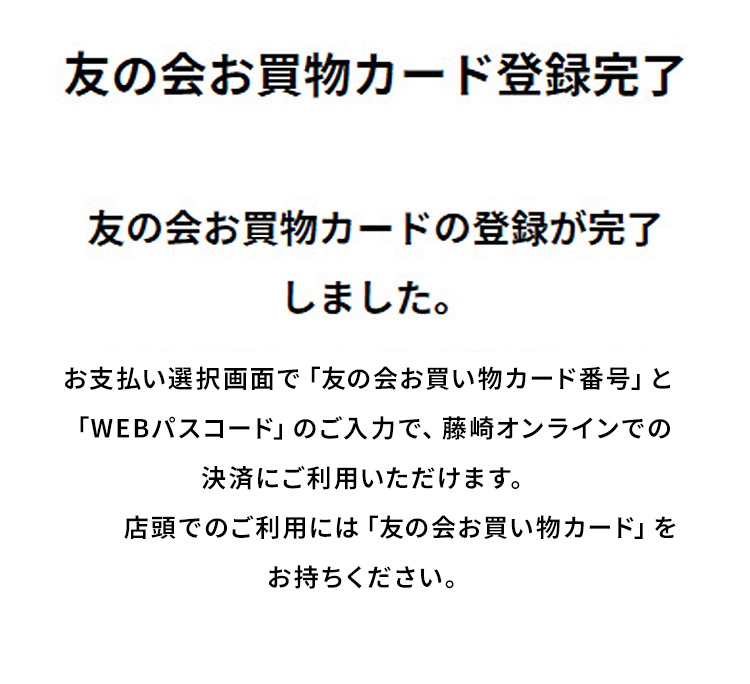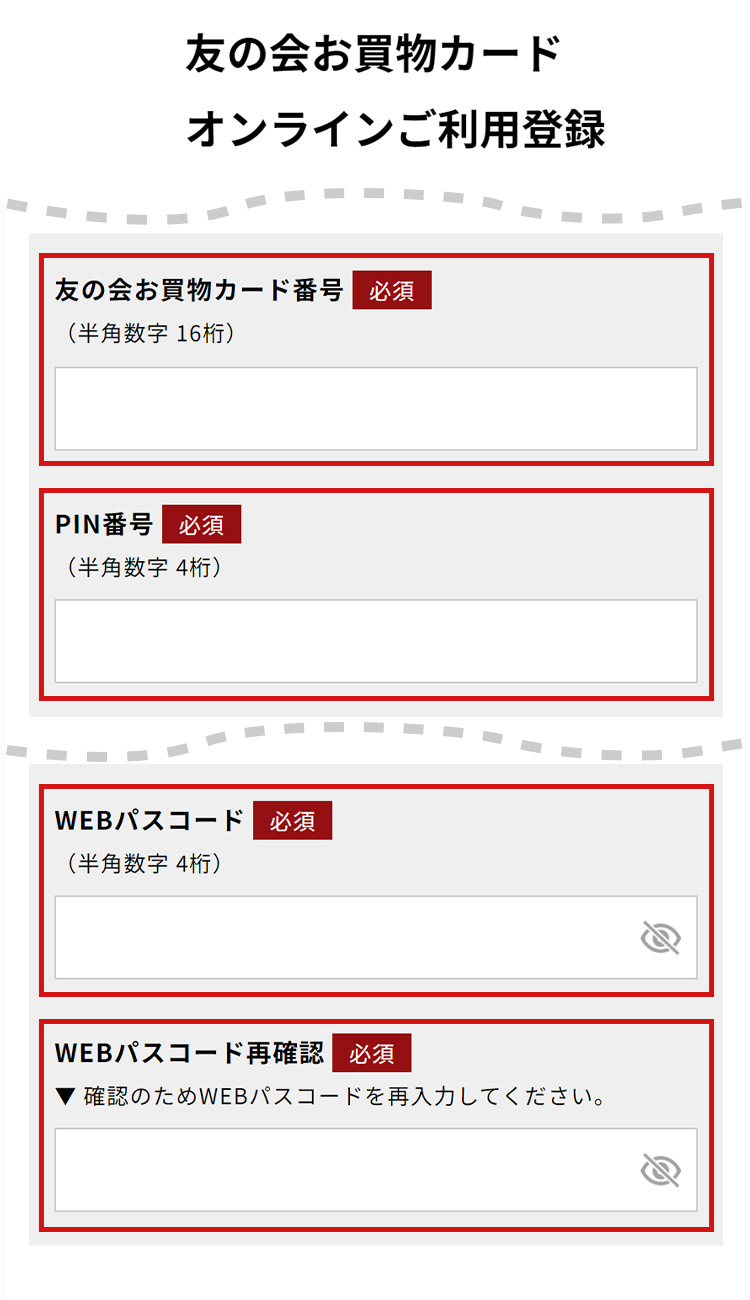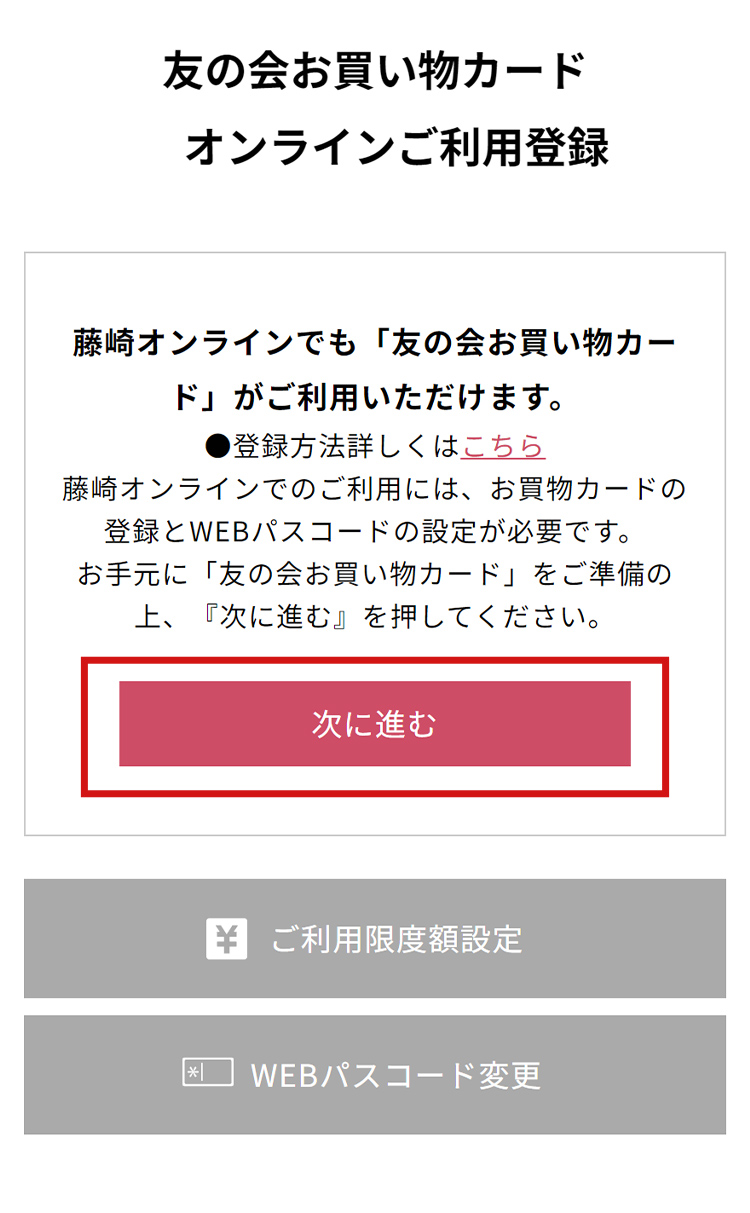 友の会お買物カード番号とWEBパスコードをご準備ください。