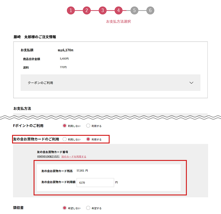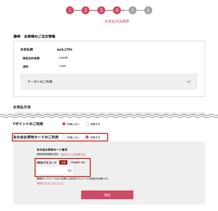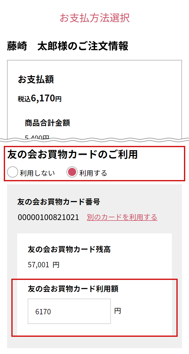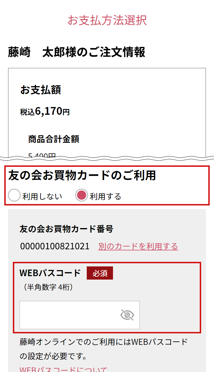 友の会お買物カード番号とWEBパスコードをご準備ください。